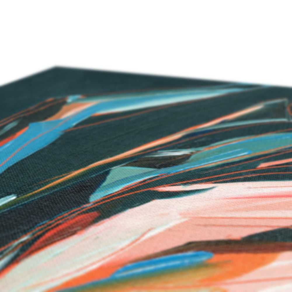 Discover the mesmerising allure of "Moody Moments", set against a captivating dark teal backdrop. The harmonious dance of bright oranges, pinks, whites, and blues brings life and energy to your space, while the subtle scratched details add a touch of depth and uniqueness. With its powerful symbolism of strength and resilience, this artwork serves as an inspiring reminder to embrace life's colorful moments. Own this masterpiece today and infuse your surroundings with a captivating burst of vitality and positivity.