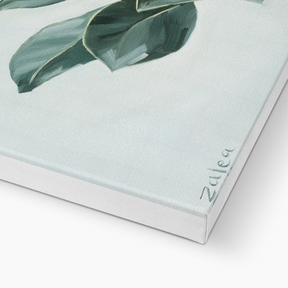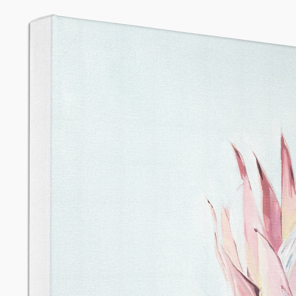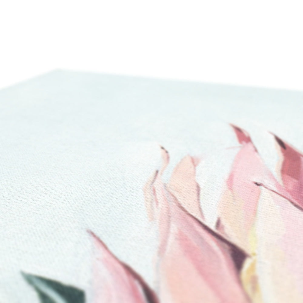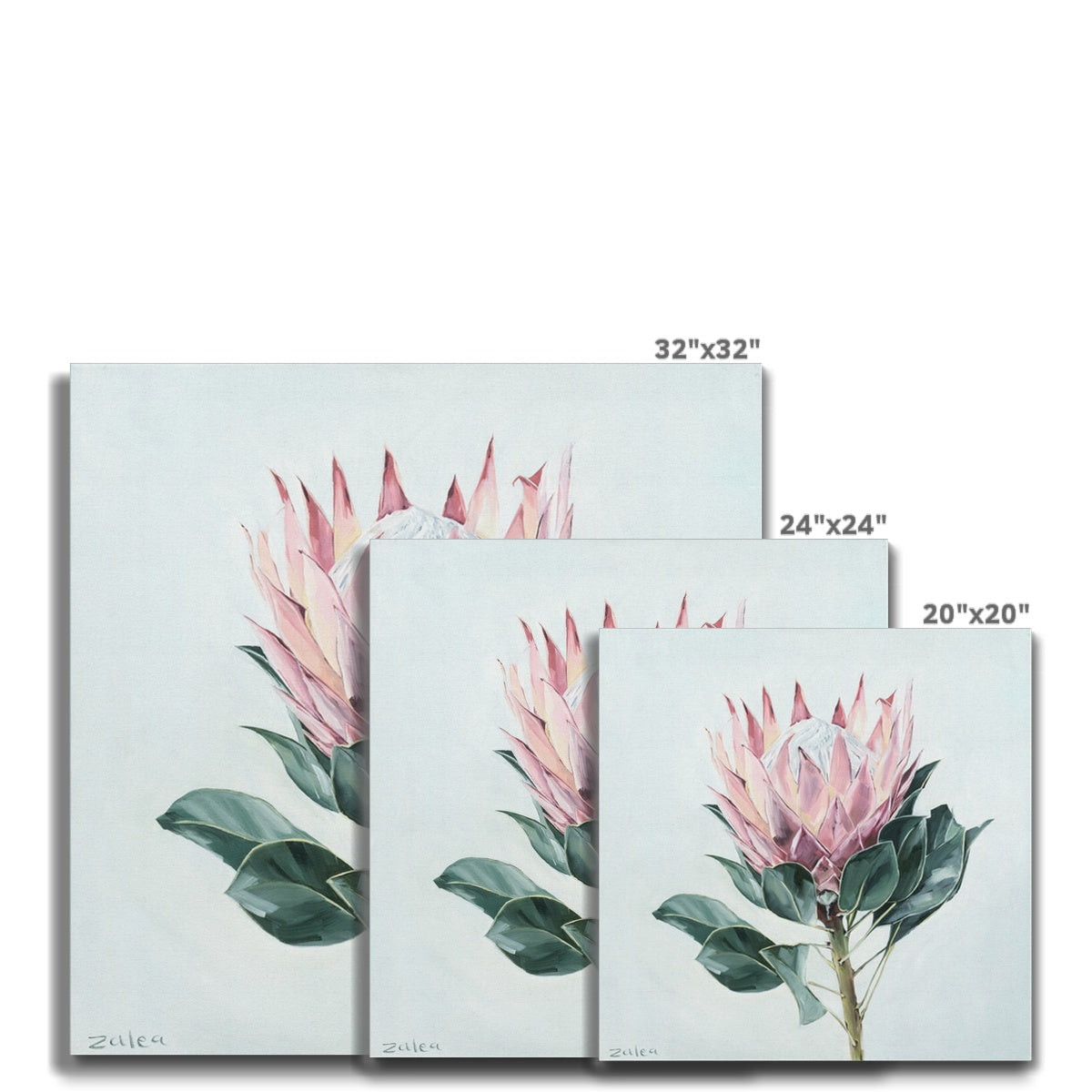 Canvas Print "Ethereal Elegance 1": This title reflects the ethereal quality of this beautiful South African flower. The painting exudes tranquility and grace, inviting viewers to immerse themselves in the serene beauty of the blooming protea. The artwork embodies a sense of elegance and sophistication, drawing viewers into a world of delicate allure.
