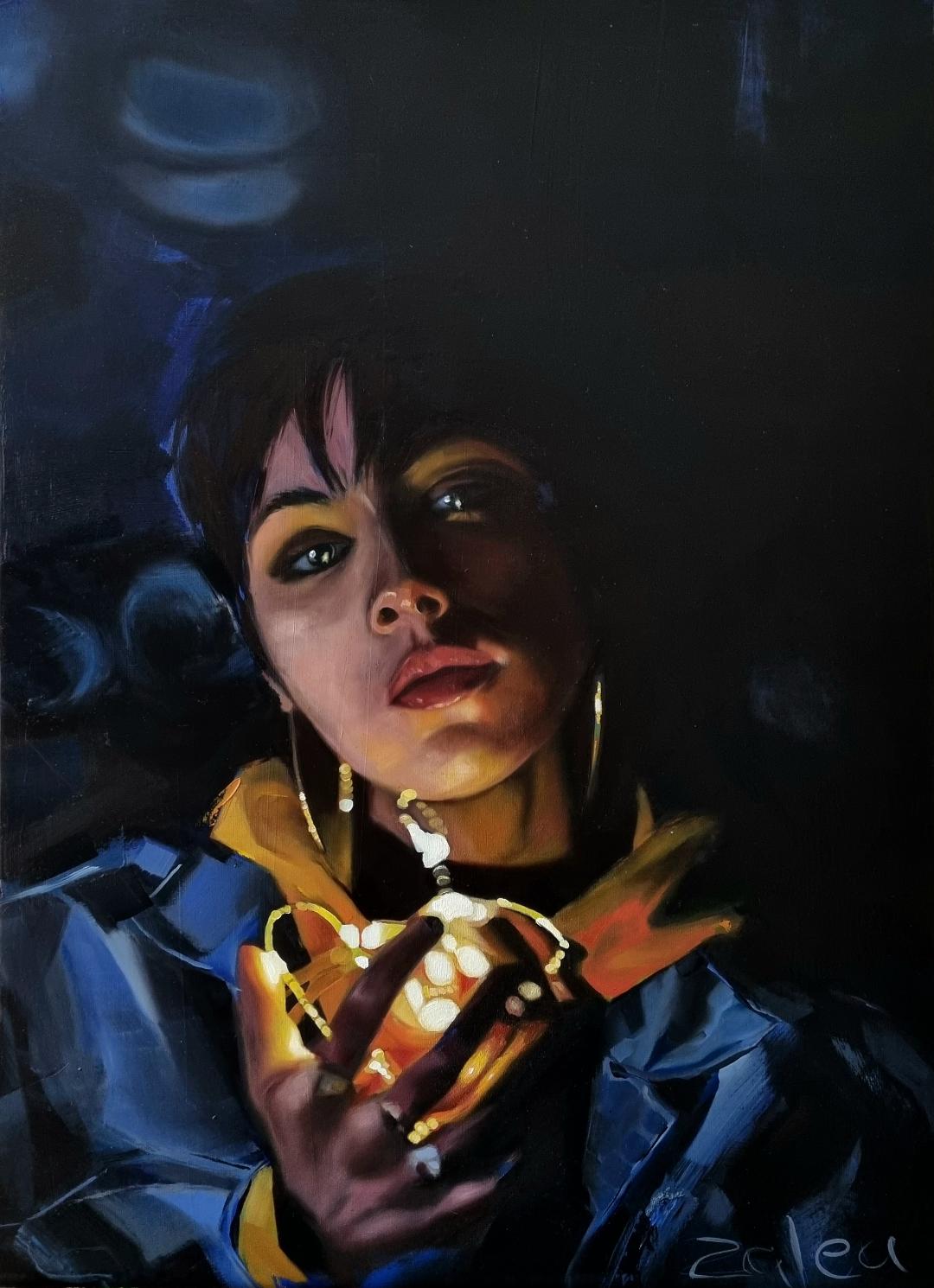 This painting is part of a series of woman from South Africa. This young woman is called LUNA. LUNA means 'moon'. She was inspired by hope. The light she is holding symbolizes the hope we have to hold on to in difficult times. LUNA personifies women who are living on the streets, single moms, women in abusive relationships, and women who do not see an outcome...LUNA wants to let you know that to hold on to hope is a choice. She rarely smiles, but when she does, it is the most beautiful sight in the world. People can't keep their eyes off her when she does! She went to a private school but when her dad left, she ran away from home and went to live with her boyfriend. She fell pregnant, he left her, she had an abortion and that was when she tried to kill herself. She was found by a missionary in a street alley. He took her to a hospital, then a women’s shelter. But LUNA could not stop crying. They kept in touch, and after a while LUNA's heart began to heal. Six years later, he asked her to marry him. Now they roam the streets together, sharing the hope that lives in them. Because of LUNA and her husband, many young women have been saved this way. She does not have many reasons to smile, but when she thinks of her aborted baby, she can not help but smile now. Her source of pain has caused her to meet the kindest man ever, one that loves her above anything else. But more importantly, her pain has caused her to cling to hope.