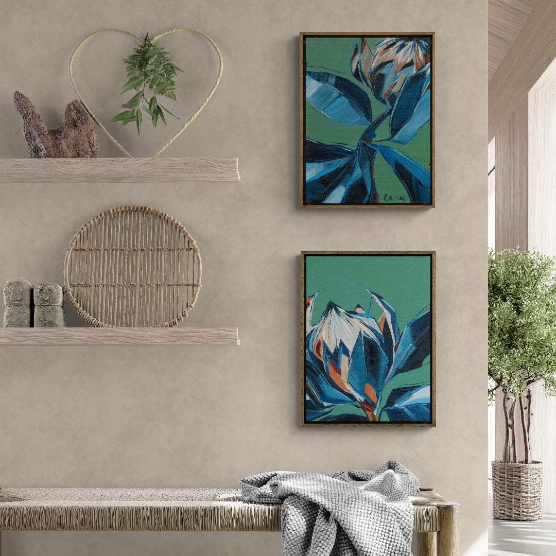 "Midnight Bloom" suggests a mysterious and enchanting atmosphere. The combination of blue and green colours evokes a sense of tranquility and nature, and add an element of intrigue and nocturnal allure.