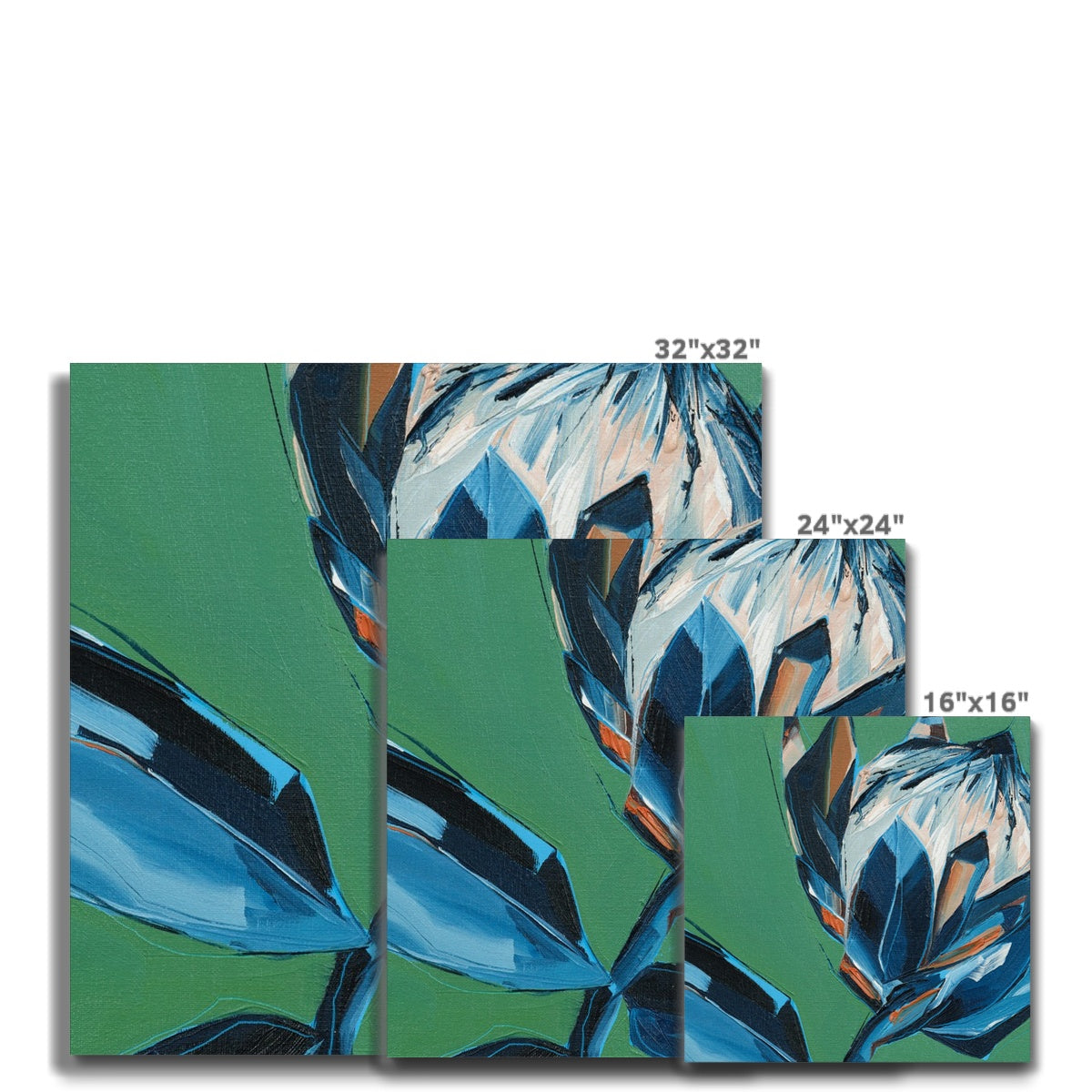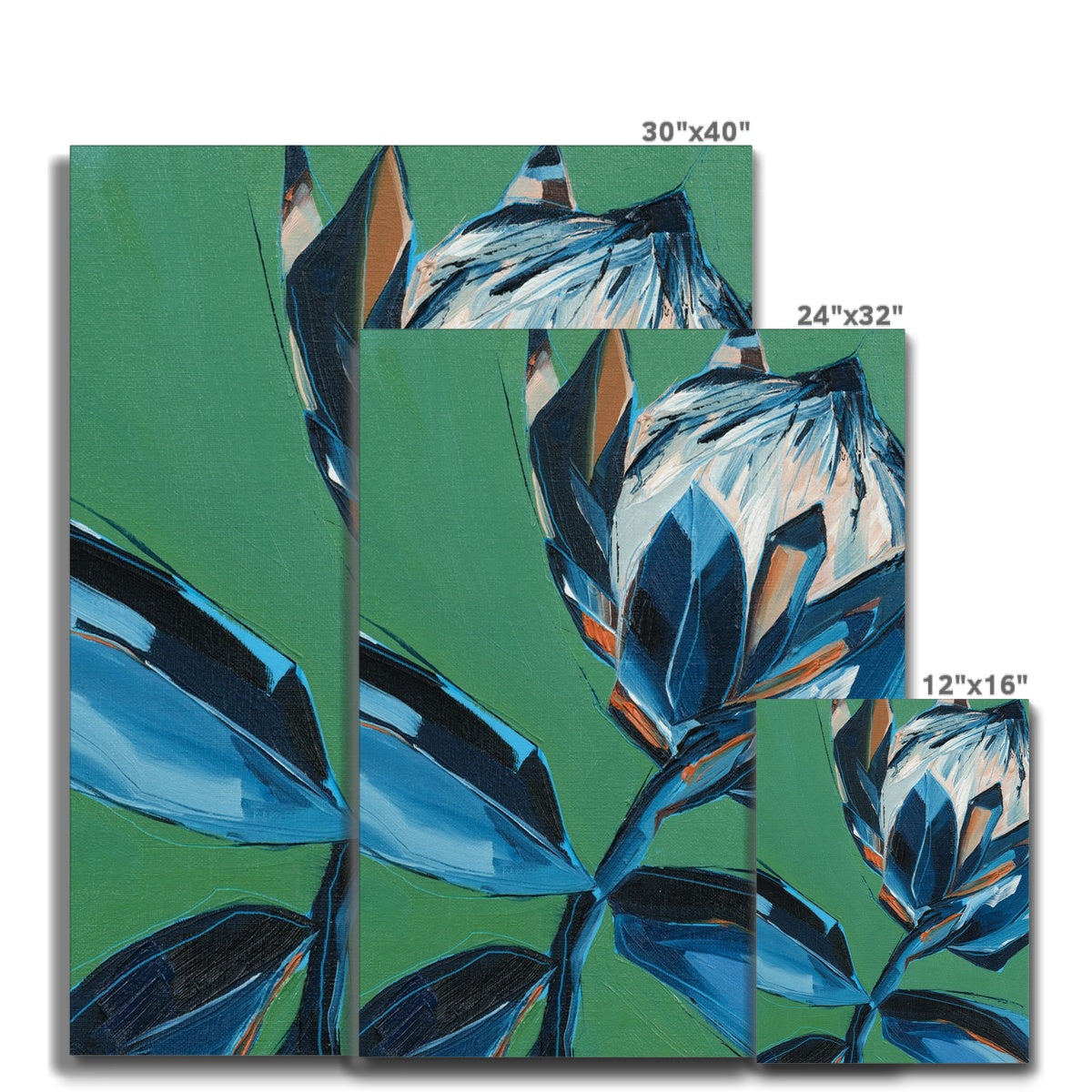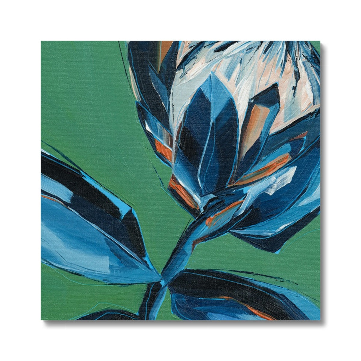 The Canvas Print "Midnight Bloom" suggests a mysterious and enchanting atmosphere. The combination of blue and green colours evokes a sense of tranquility and nature, and add an element of intrigue and nocturnal allure.